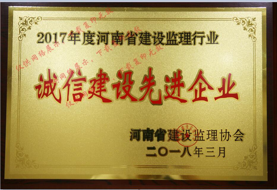 2017年度河南省建設監(jiān)理行業(yè)誠信建設先進企業(yè)